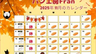 パン工房 Fran 2026年1月の営業カレンダーができあがりました。2025年はオープンさせていただき、皆様にごひいきにしていただき、ありがとうございました。2026年もよろしくお願いします。みなさまのご来店を心よりお待ちしております🐱♪...