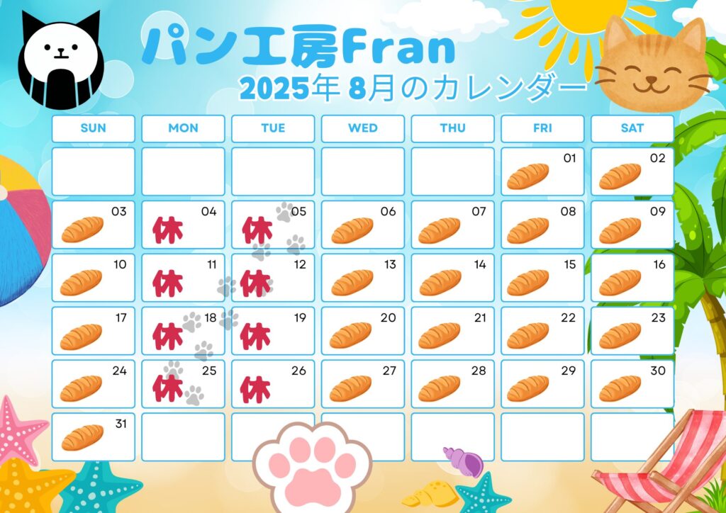 お出かけの際には、下のカレンダーをご確認のうえ、ぜひお気に入りのパンを見つけに来てくださいね。